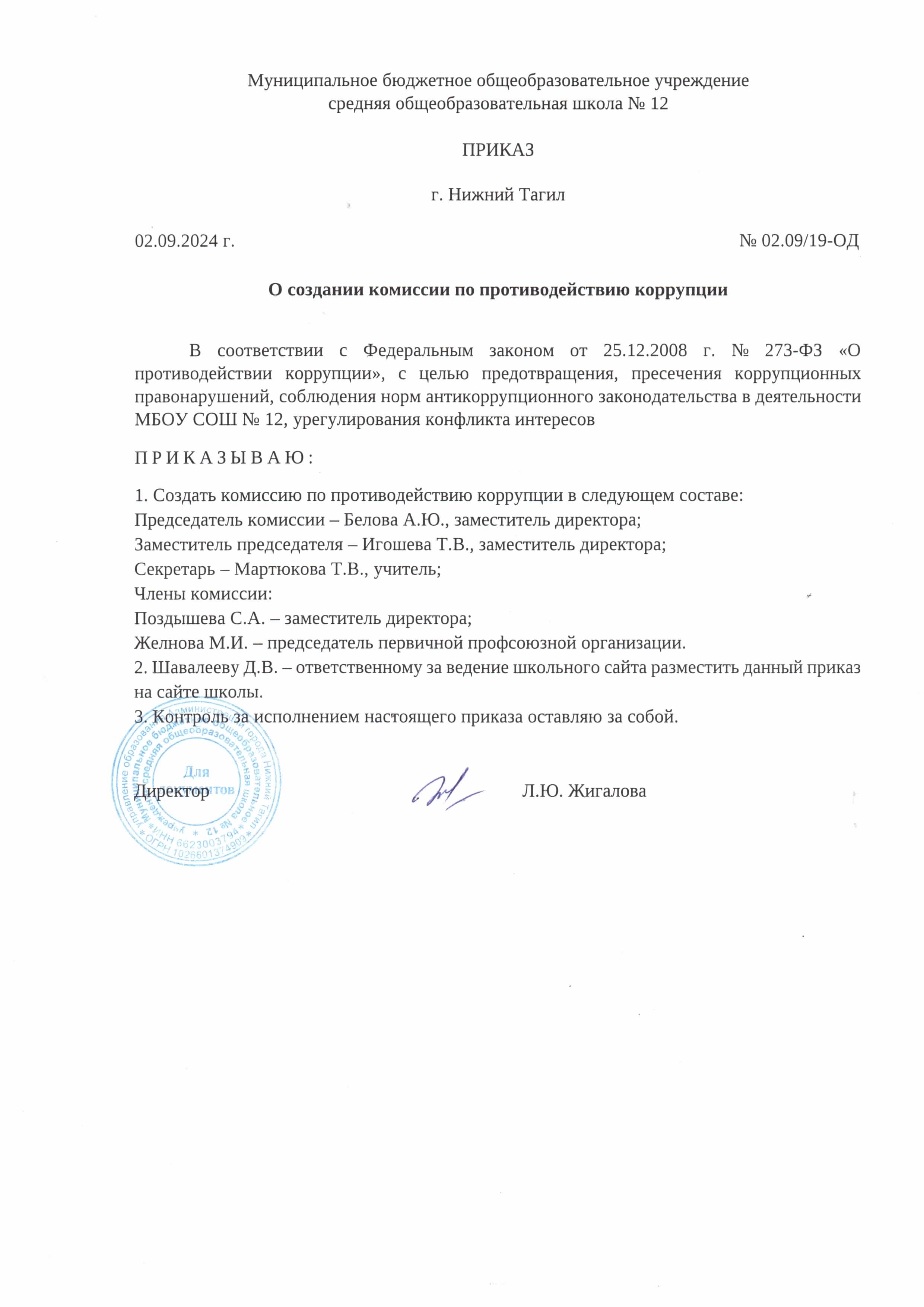 Приказ о создании комиссии по противодействию коррупции